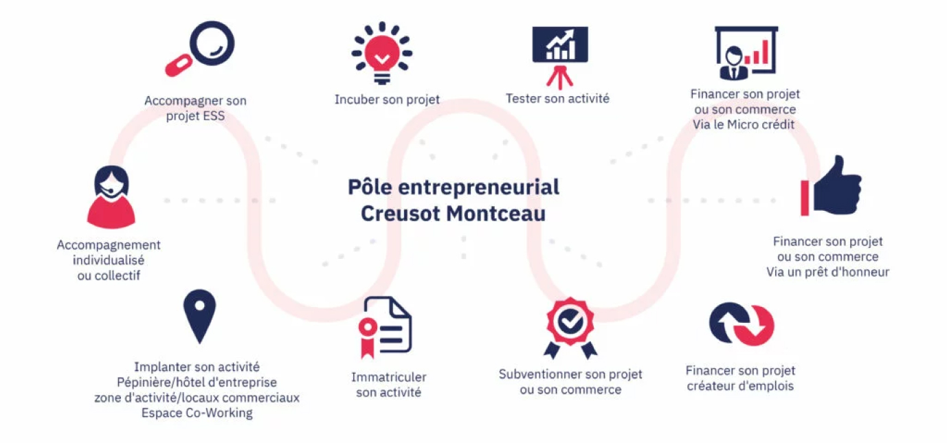 La Communauté Urbaine Creusot Montceau encourage et favorise l’entrepreneuriat sur son territoire en proposant un parcours d’accompagnement identifié à destination de tous les porteurs de projet.